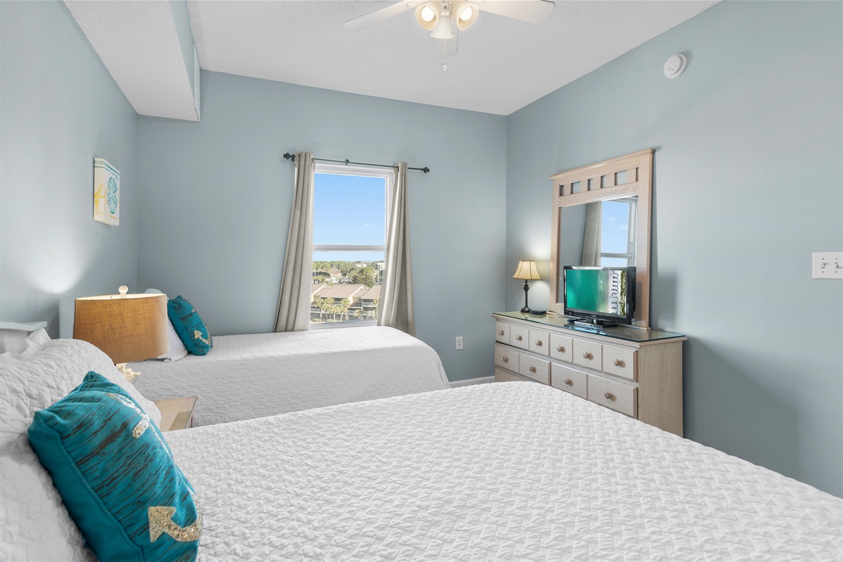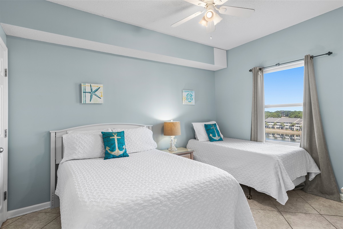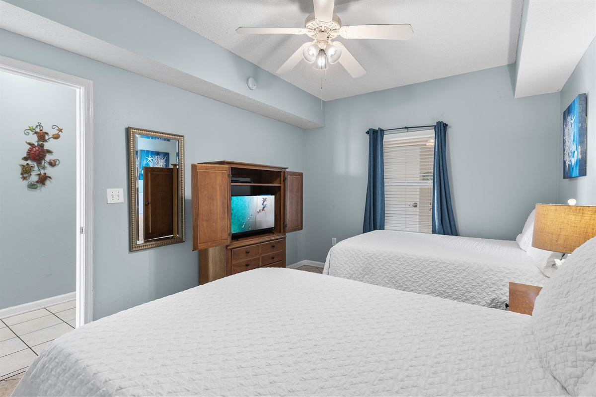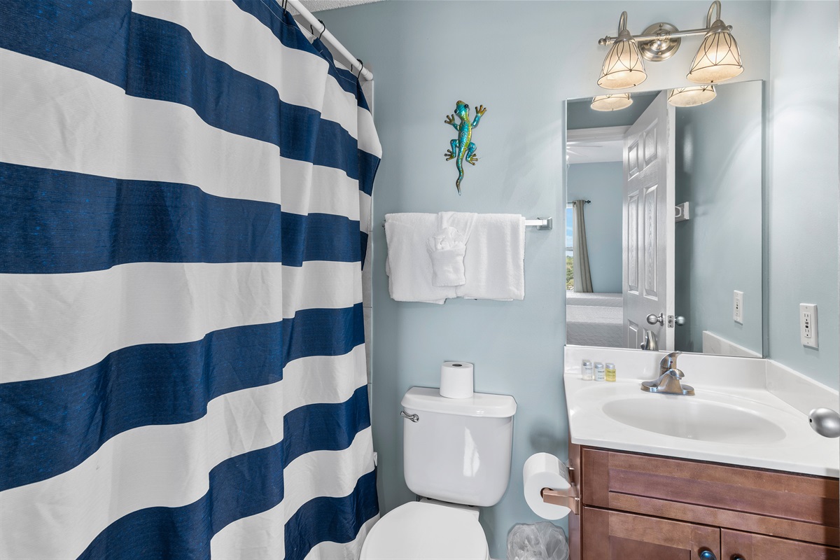 ✹ Guest Bedroom 2: QUEEN BED + Twin Bunk Bed, Smart TV, Private Bathroom with Shower/Tub Combo (sleeps 4)